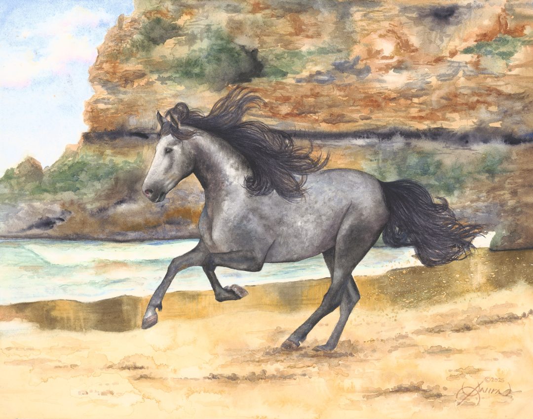 Wild and Free Misc Horse running across the beach, watercolor on watercolor paper, 11×14 Skills horse Posted on February 6, 2026 ← Evening Spark